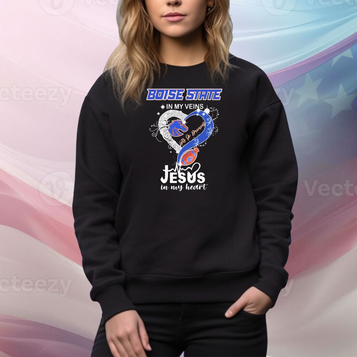 Boise State Broncos In My Veins Jesus In My Heart Let’s Go Broncos Diamond Tee Shirt