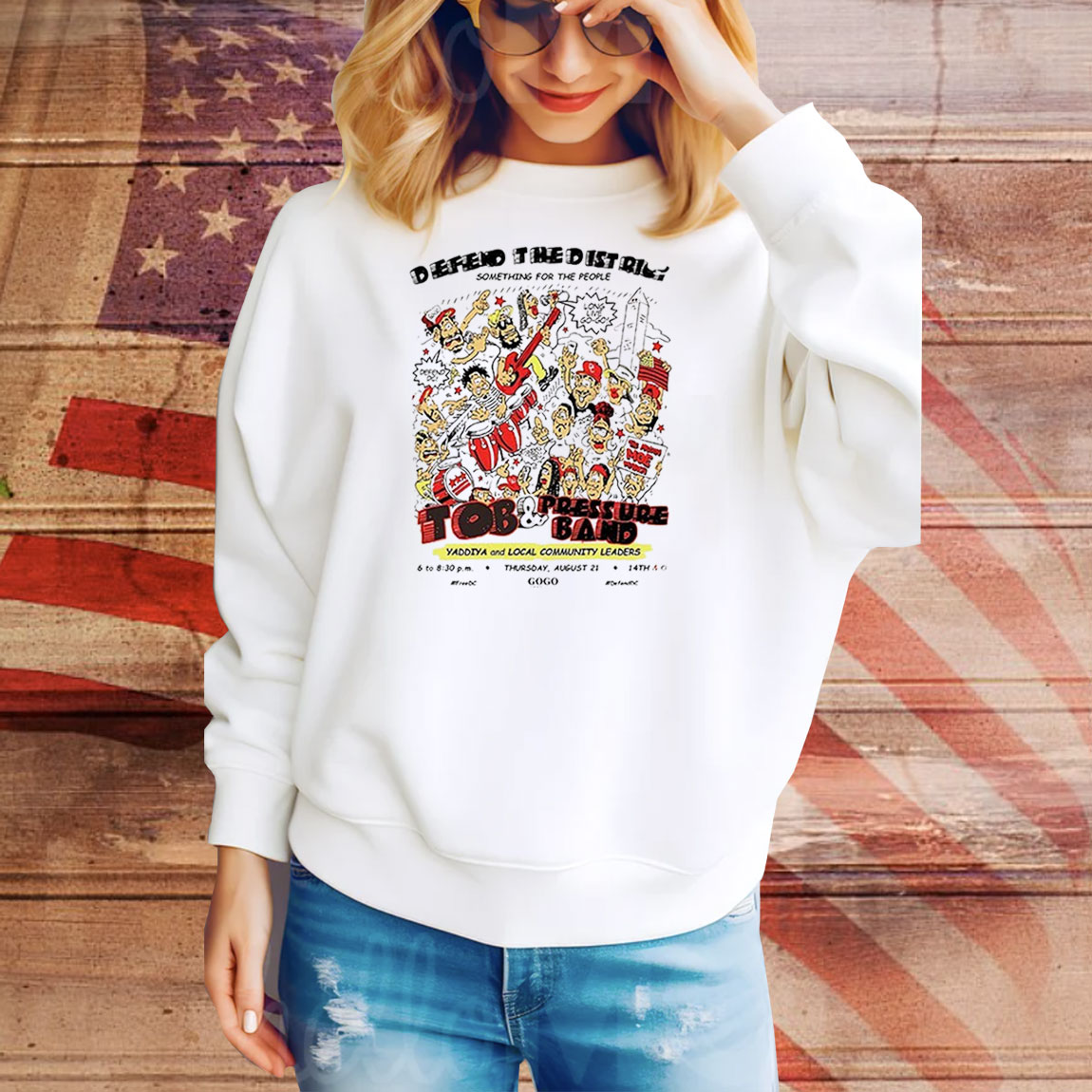 Defend The District go-go Tob and Pressure Band cartoon Tee Shirt