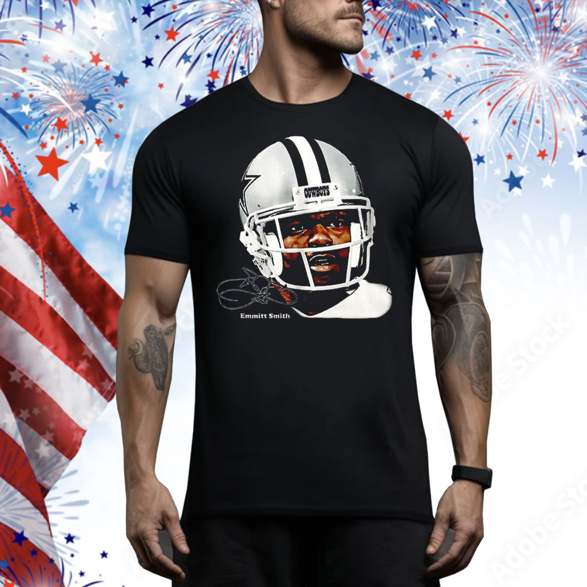 Emmitt James Smith III Dallas Cowboys watercolor art big head Tee Shirt