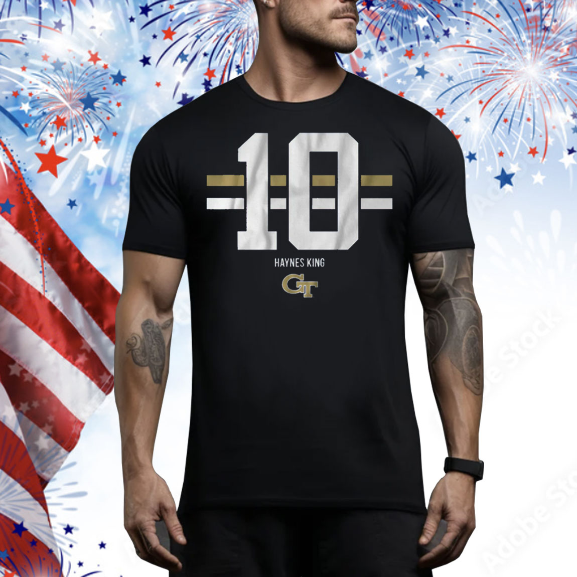 Georgia Tech Football Haynes King Name Number Stripe Tee Shirt