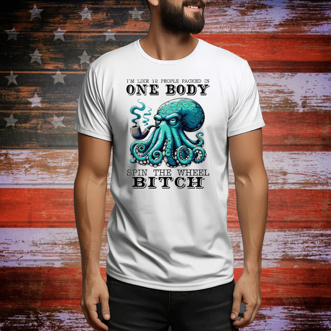 • Eye-Catching Graphic: Features the bold and playful phrase “I’m Like 12 People Packed In One Body Spin The Wheel Bitch” in a stylish design.