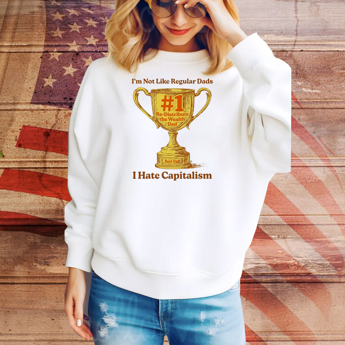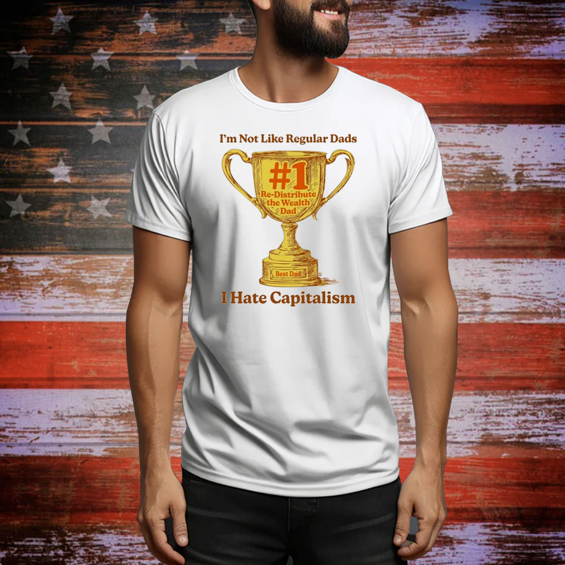 I’m Not Like Regular Dads I Hate Capitalism #1 Re-Distribute The Wealth Dad Trophy Tee Shirt