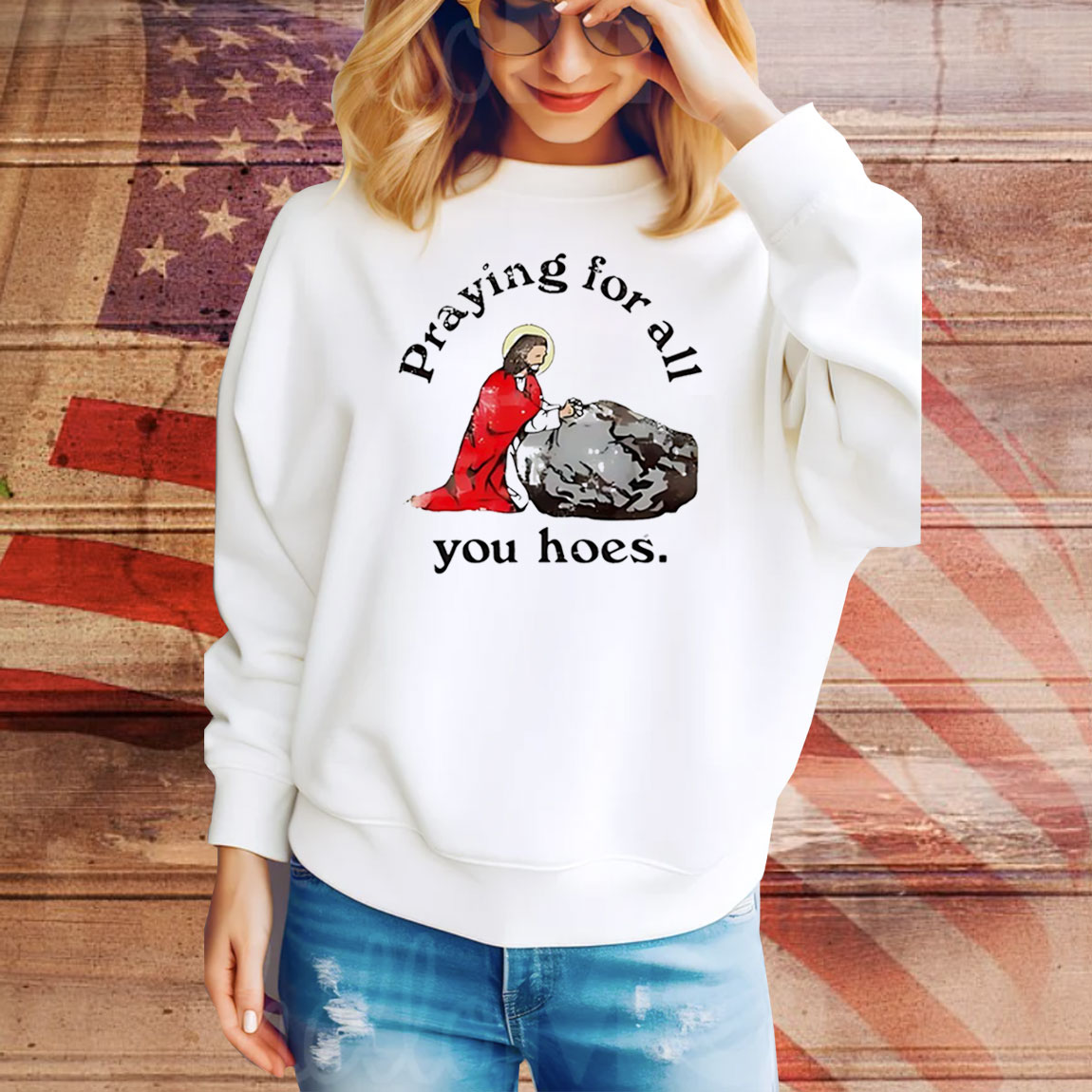 Jesus praying for all you hoes Tee Shirt