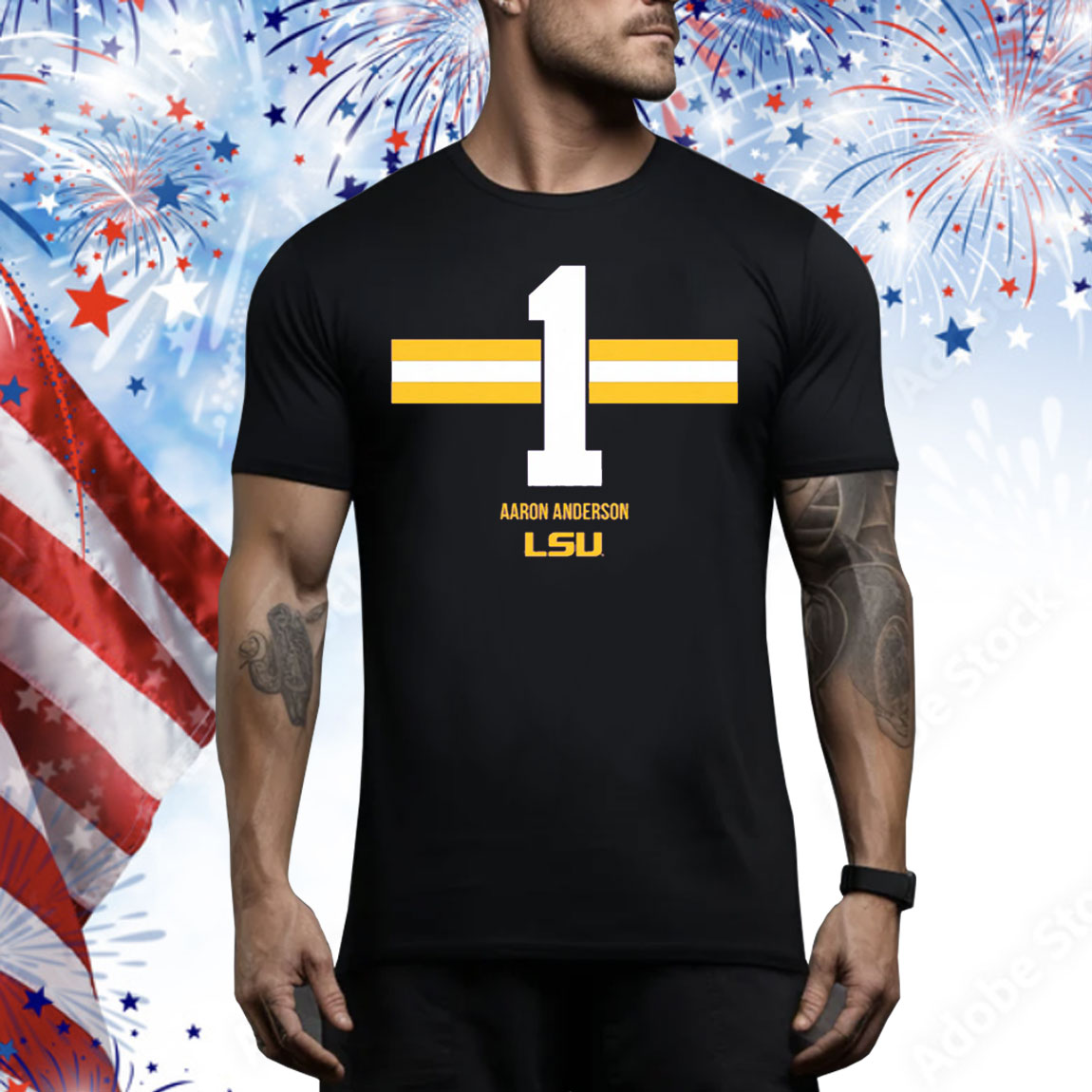LSU Football Aaron Anderson 1 Stripe Tee Shirt