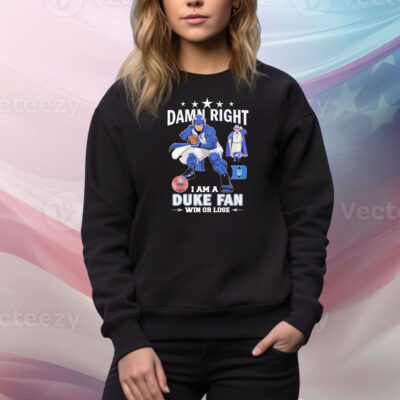 Official Damn Right I Am A Duke Blue Devils Fan Win Or Lose Mascot Tee Shirt