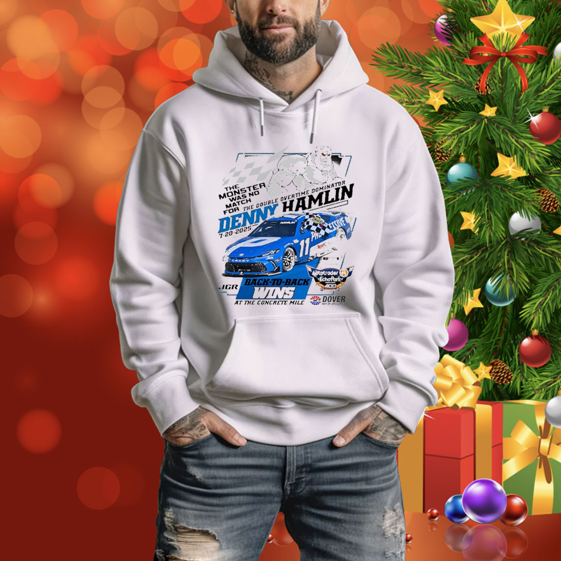 Official Denny Hamlin Checkered Flag Sports 2025 Autotrader EchoPark Automotive 400 Race Win At The Concrete Mile Tee Shirt