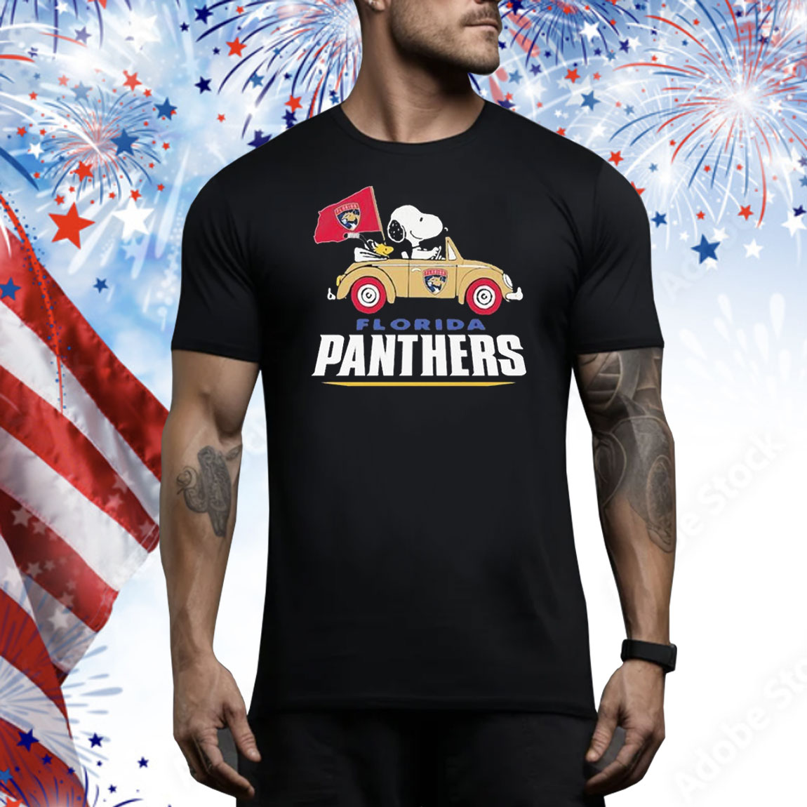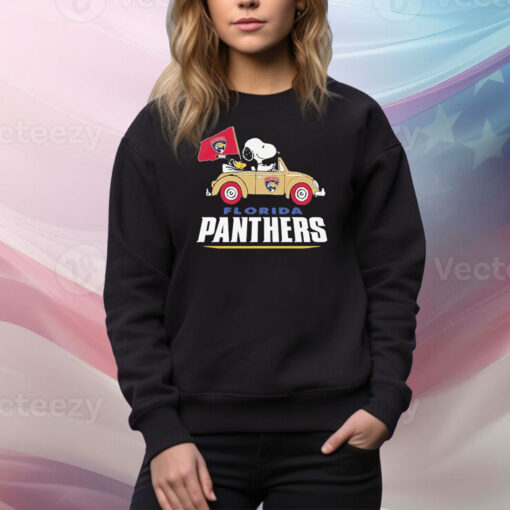 Official Snoopy And Woodstock Driving Car Florida Panthers Tee Shirt