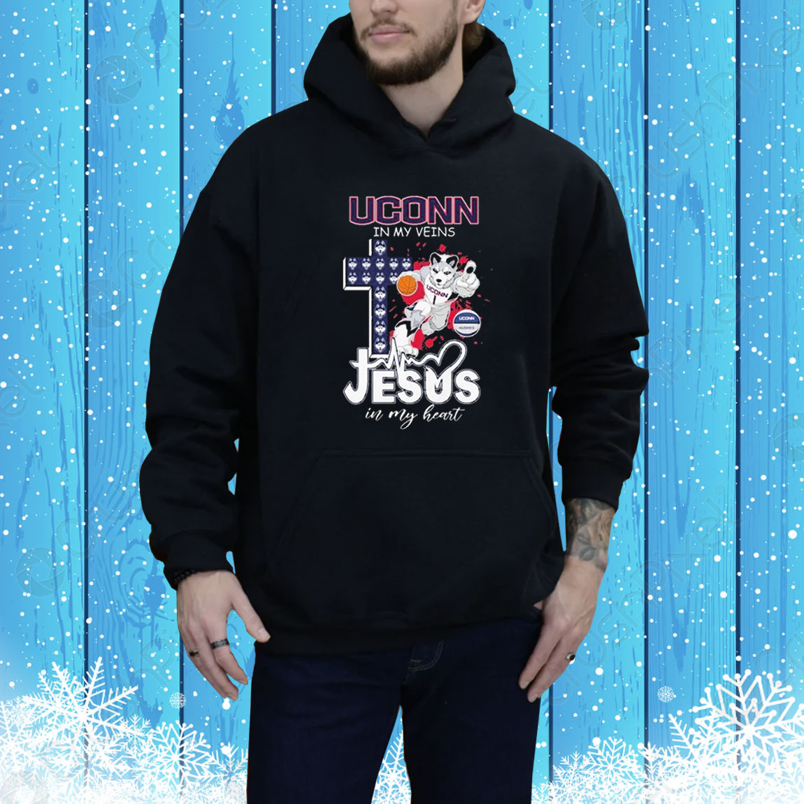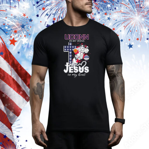 Official Uconn Huskies Basketball In My Veins Jesus In My Heart Mascot Tee Shirt