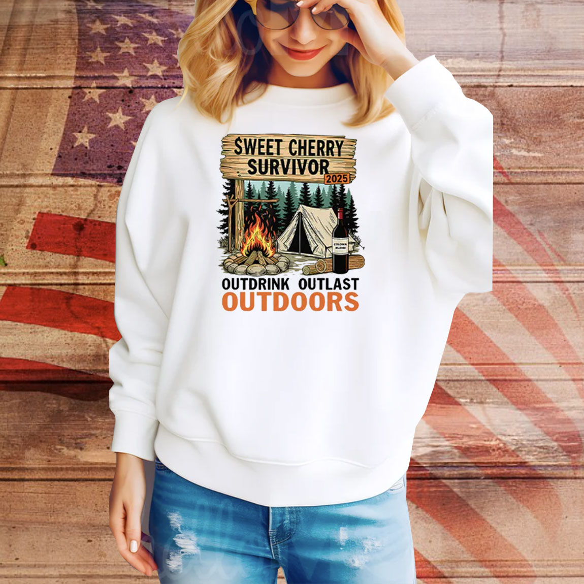 Sweet Cherry Survivor 2025 Outdrink Outlast Outdoors Tee Shirt
